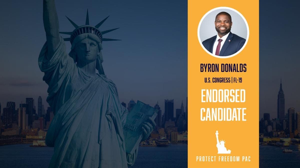Protect Freedom PAC, an independent organization dedicated to supporting pro-liberty and freedom-minded candidates, has endorsed Byron Donalds for Congress in FL-19.